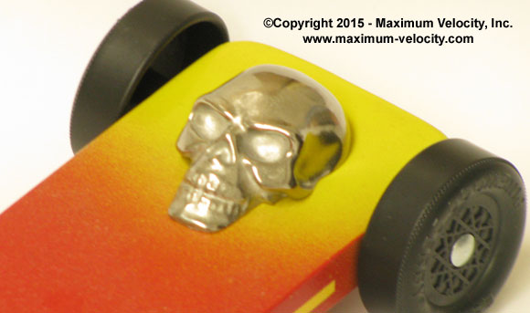 Maximum Velocity is now offering a 2.9 ounce tungsten canopy shaped as a skull to give your pinewood derby car a very distinctive look.