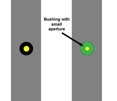 Most sensors are infrared (IR) sensitive, and are generally not affected by room lighting or camera flashes.3 However, reflective surfaces on the track and car can change the amount of IR entering the sensor. This can be limited by painting a non-reflective black stripe across the finish line area.4 Light variance can further be controlled by reducing the diameter of the sensor hole. This can be accomplished by inserting a bushing with a small aperture, sized to fit the hole. (see Figure 2)