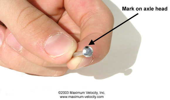 - Place a location dot on one side of each axle head with a marker. If bending both front and back axles, use one color of marker for the front axles, and a different color for the rear axles.