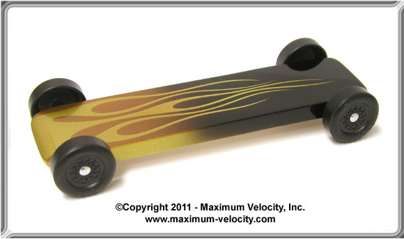 - 5638 - Extended Wheel Base: Precision-drilled axle holes located at an extended position. The holes are drilled with a #44 bit (fits BSA axles). One front axle hole is slightly raised so that the car will ride on three wheels (best performance).